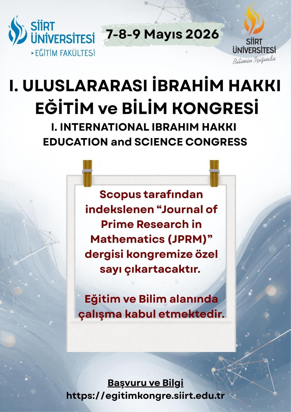 Fakültemiz tarafından düzenlenecek olan Uluslararası İbrahim Hakkı Eğitim ve Bilim Kongresi kapsamında sunulan bildiriler arasından seçilenler, SCOPUS’ta indekslenen saygın bir dergi tarafından çıkarılacak özel sayıda yayımlanacaktır.