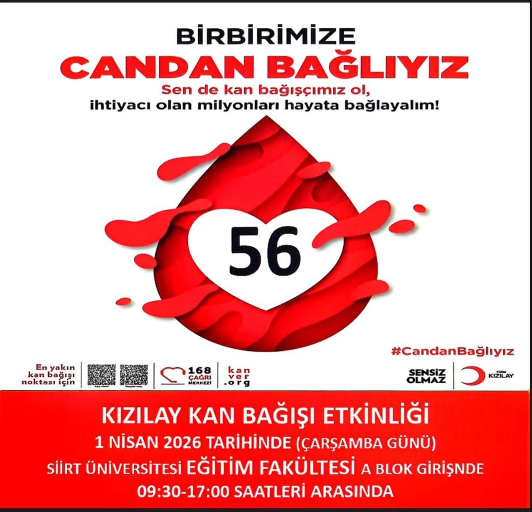 [Haber] Eğitim Fakültesi Ev Sahipliğinde Türk Kızılay Siirt Şubesi Kan Bağışı Etkinliği Düzenlenecek