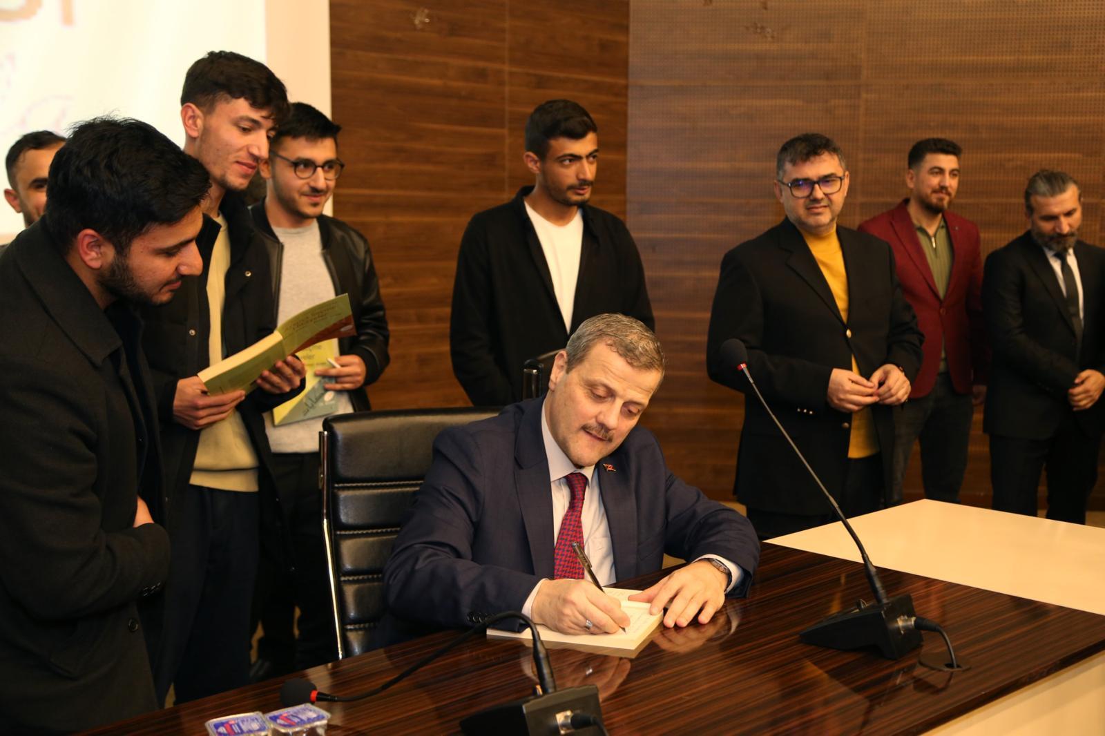 öğrencilerin Prof. Dr. Musa Yıldız’a kitaplarını imzalatmaları ve hatıra