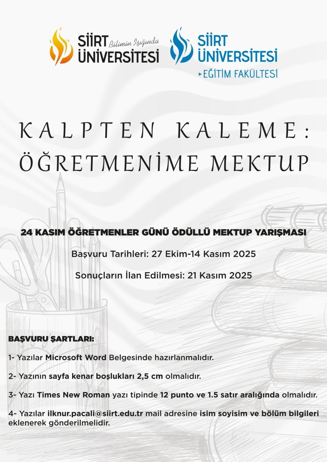 [Öğrenci] Kalpten Kaleme: Öğretmenime Mektup İsimli 24 Kasım Öğretmenler Günü Mektup Yarışması Duyurusu